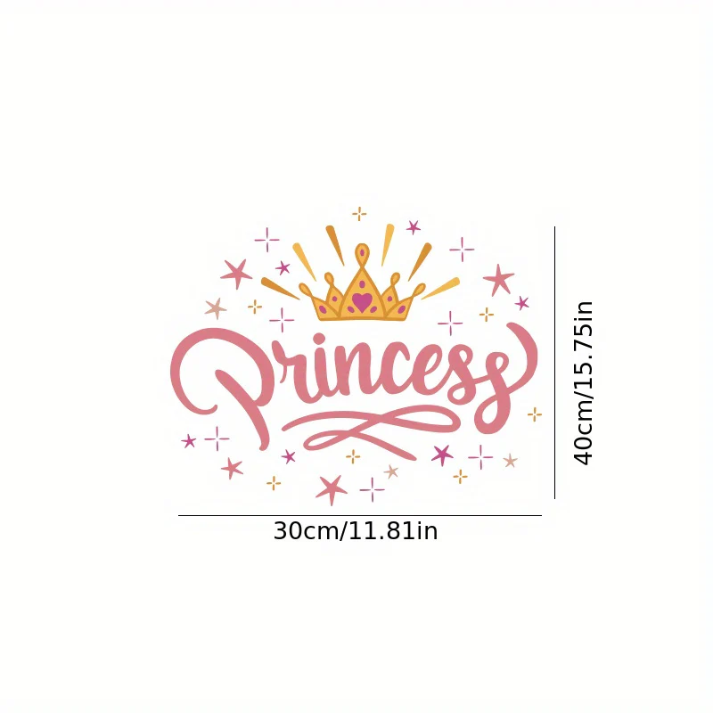 Autocollant mural unique en couleur représentant une couronne de princesse accompagnée d’un texte décoratif.