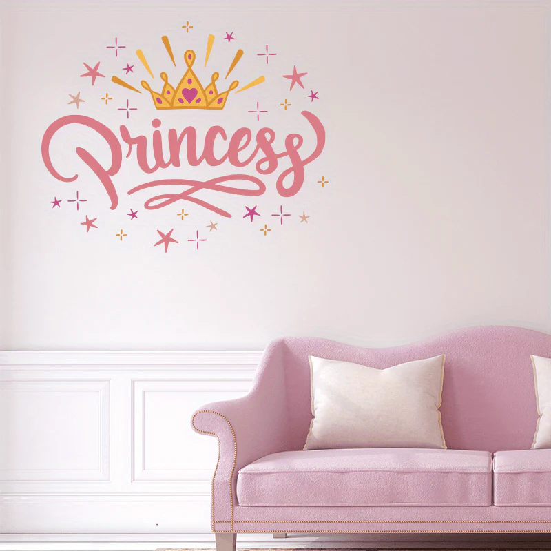 1 autocollant mural coloré avec couronne de princesse et lettrage