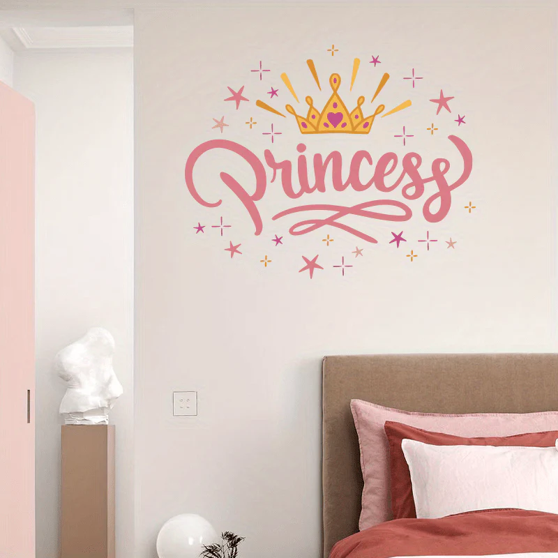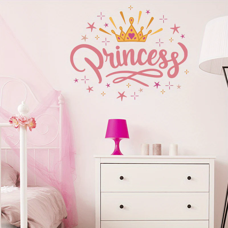 Cet autocollant mural coloré avec sa couronne de princesse et son lettrage élégant transforme chaque mur en un univers féerique.