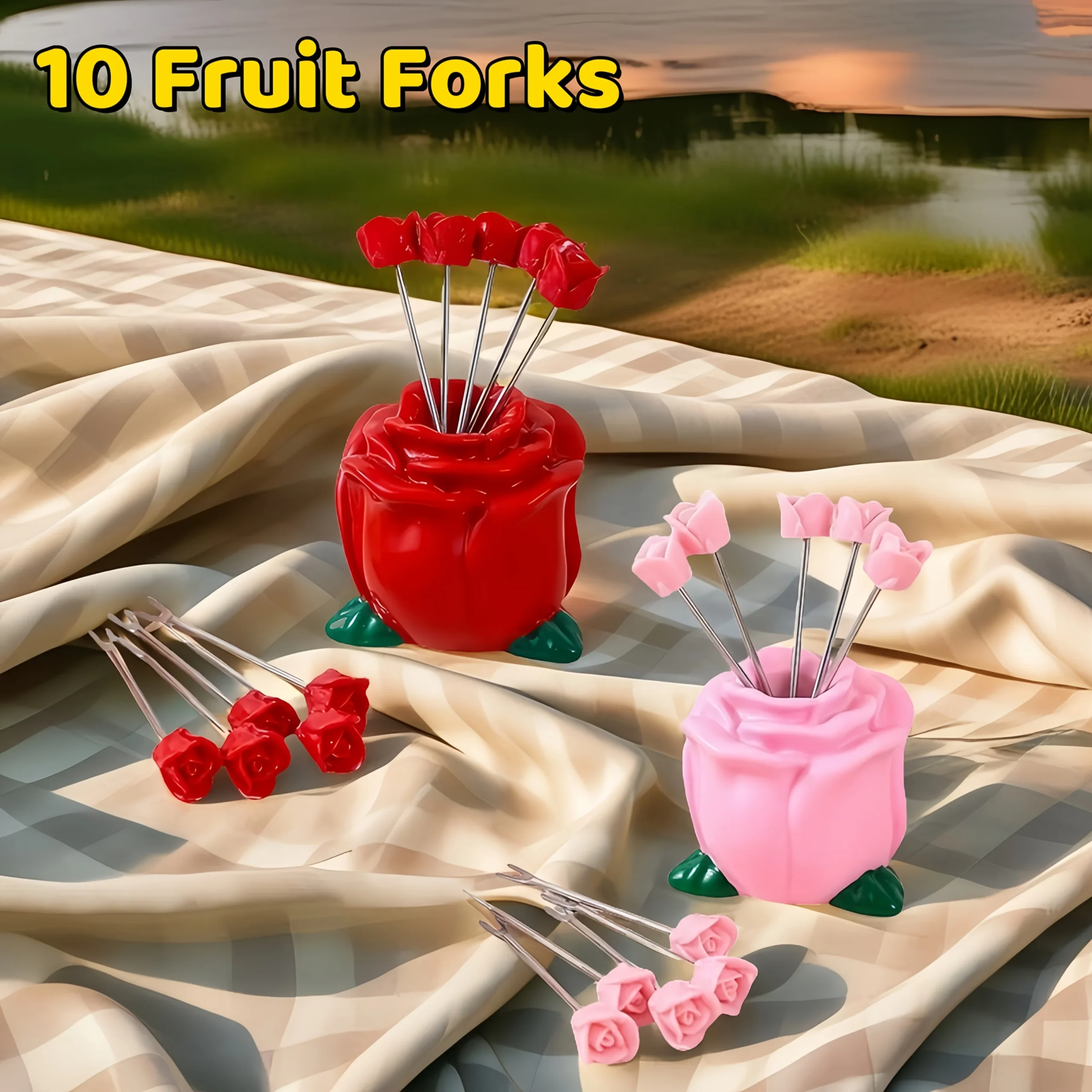 10 fourchettes à fruits créatives en acier inoxydable en forme de rose