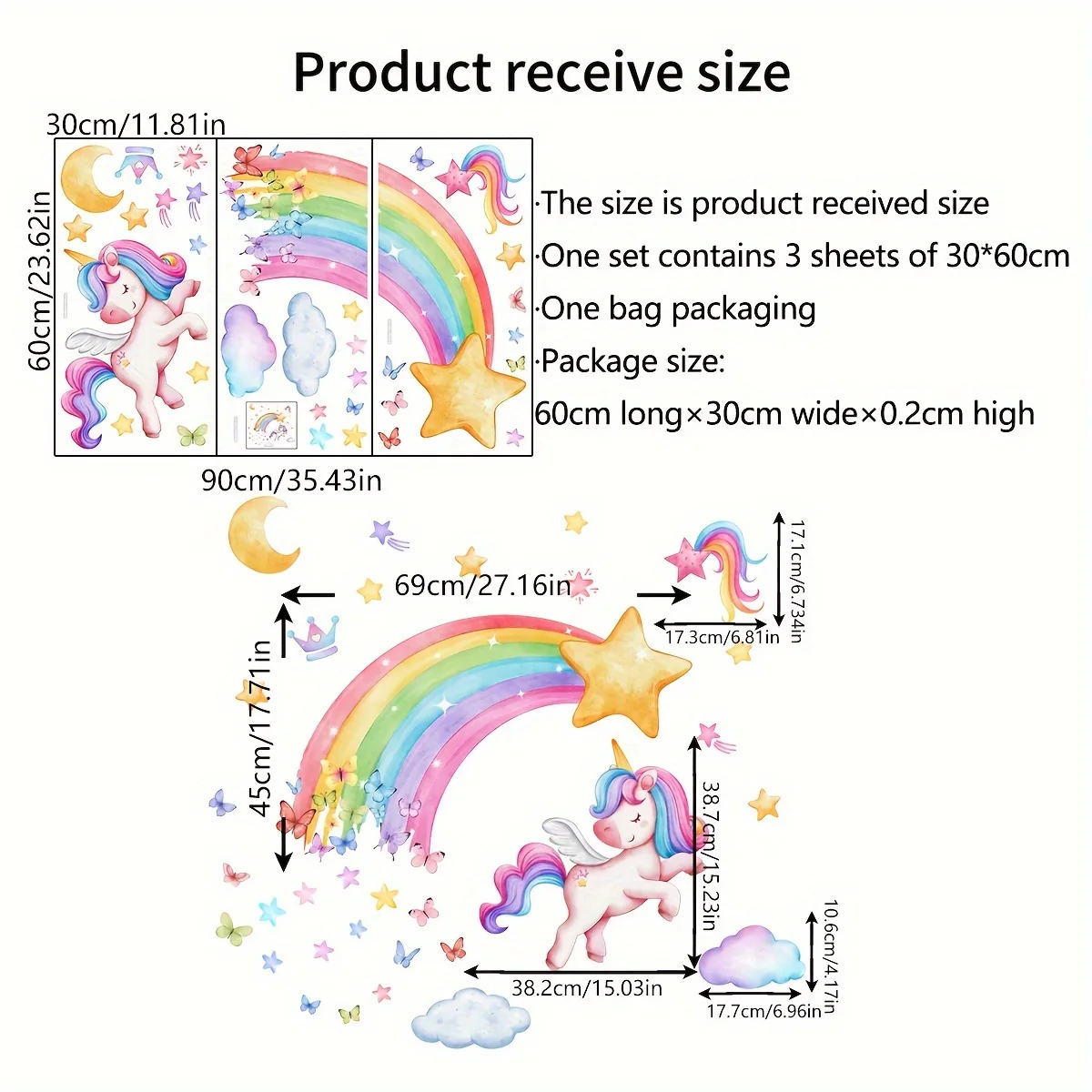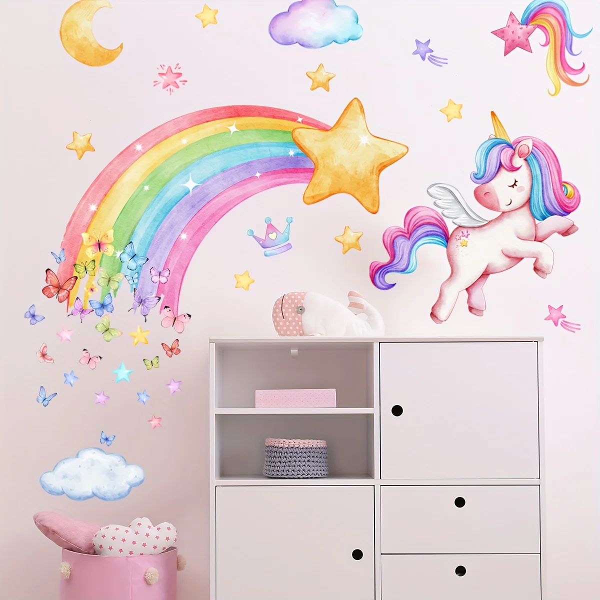 1pc Whimsical Rainbow Unicorn & Butterfly Wall Decals – Vibrant, Self-Adhesive Bedroom Stickers, Easy to Apply, No Power Needed, Perfect for Girls’ Room Decor