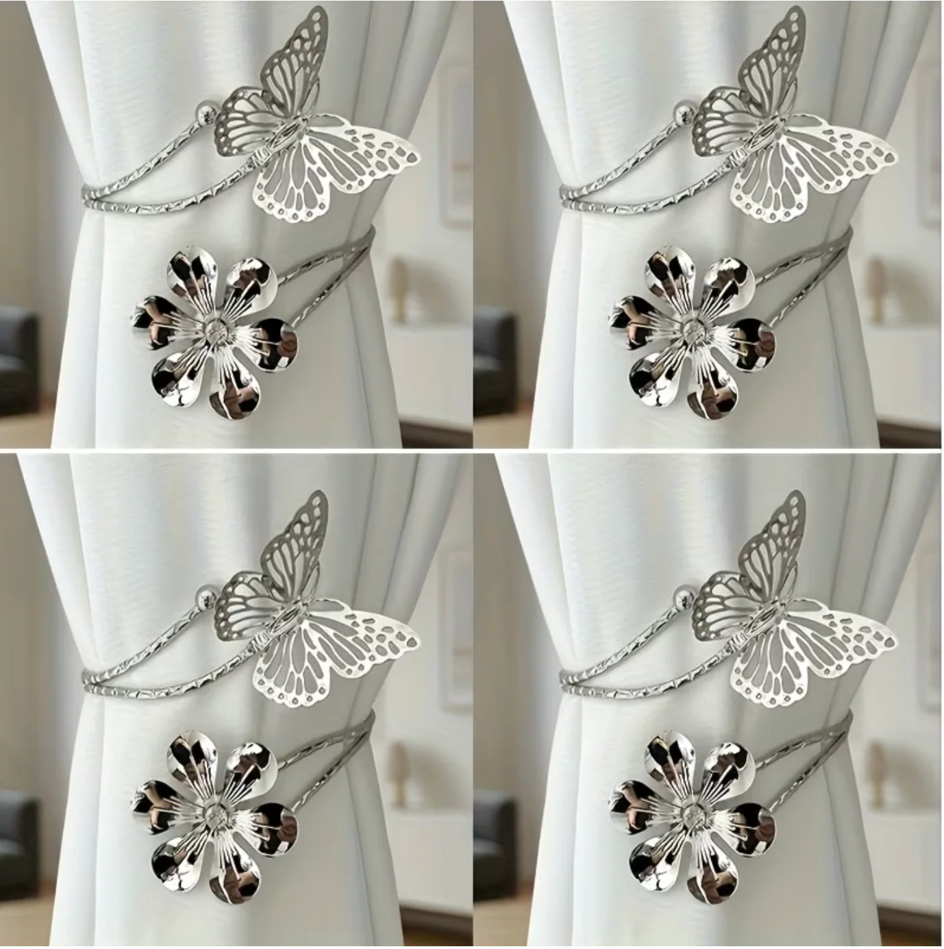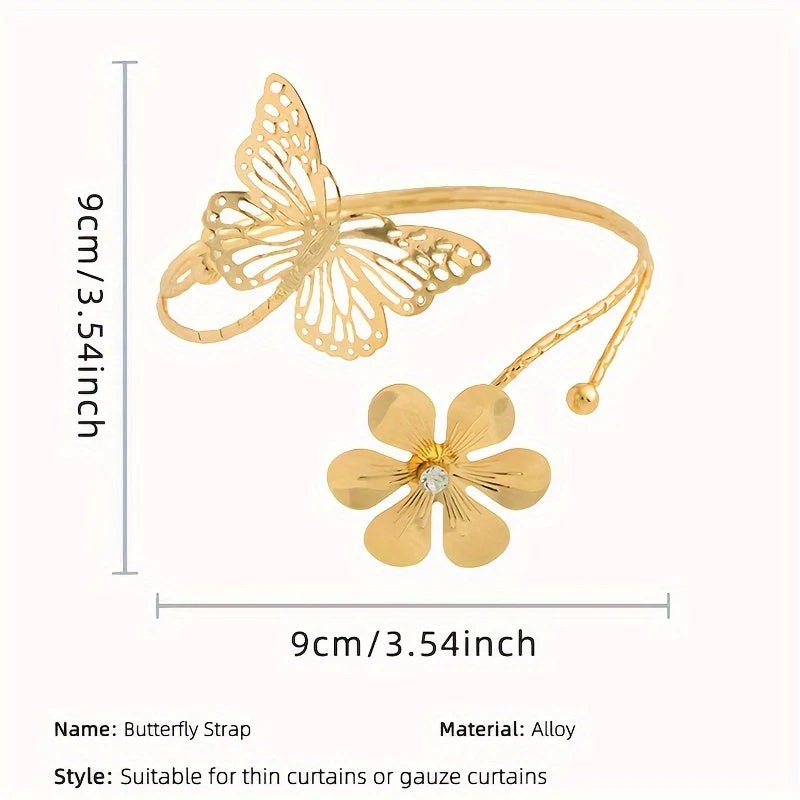 4 pièces attaches rideaux premium en métal avec design floral et papillons ajourés