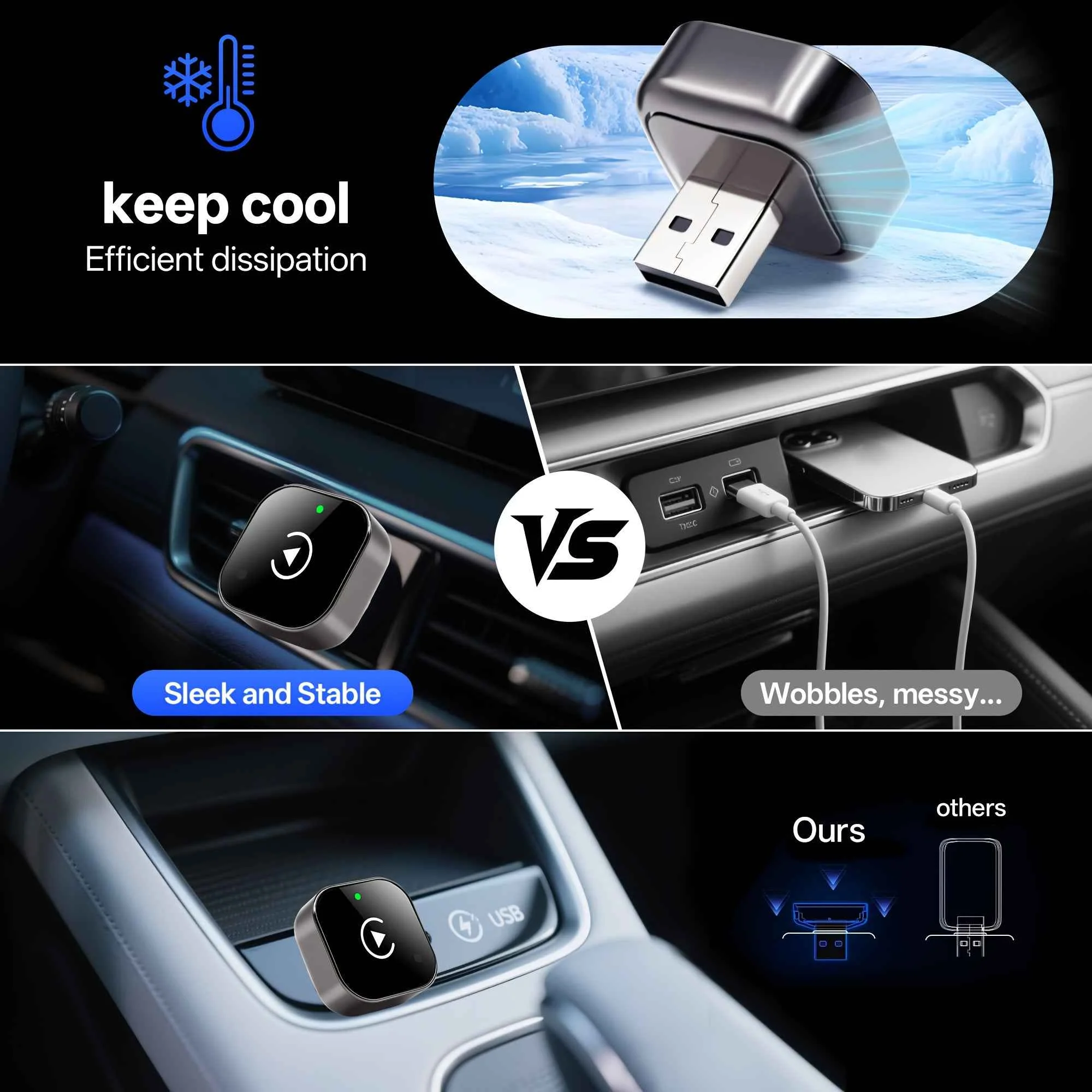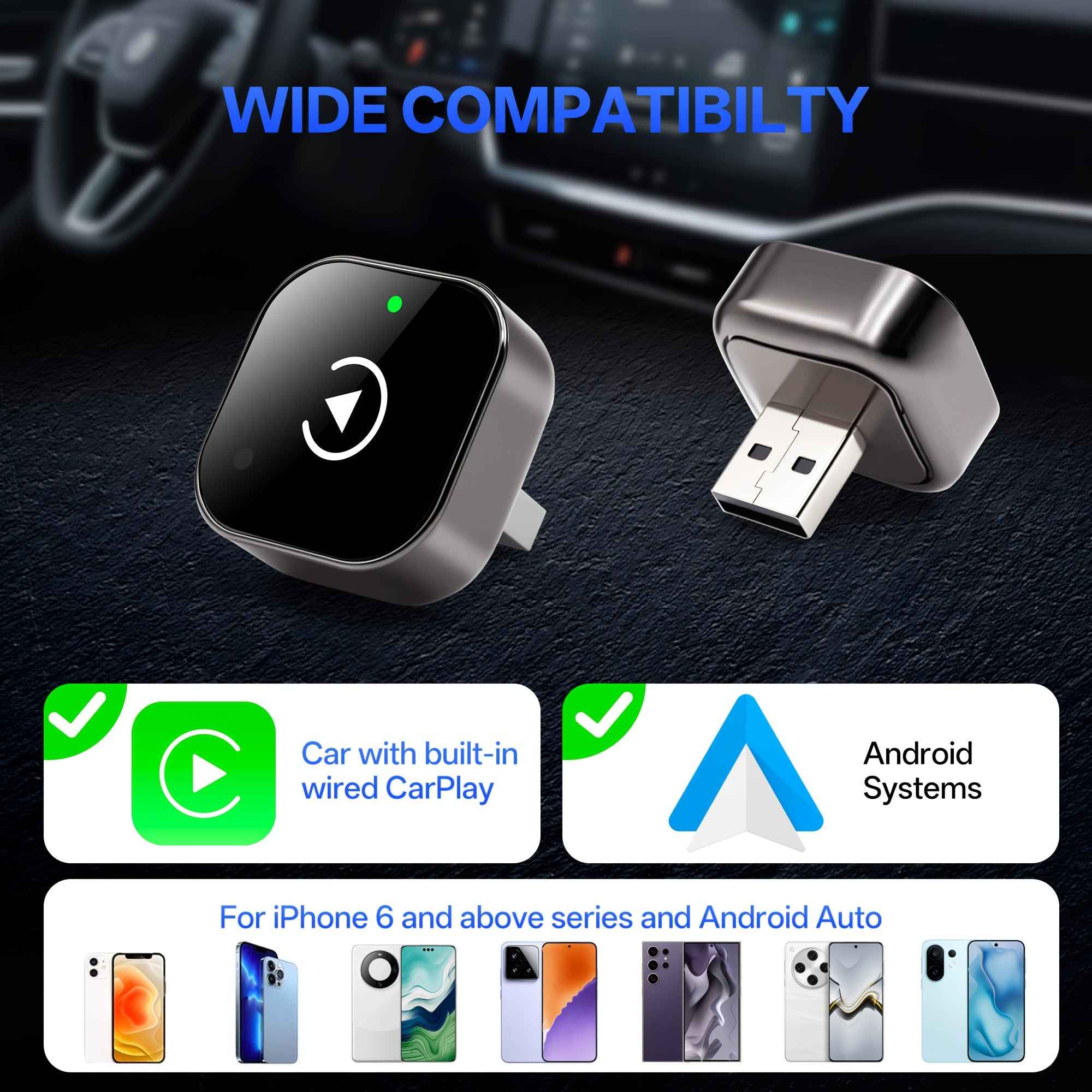 Adaptateur sans fil 2 en 1 CarPlay et Android Auto – Connexion automatique