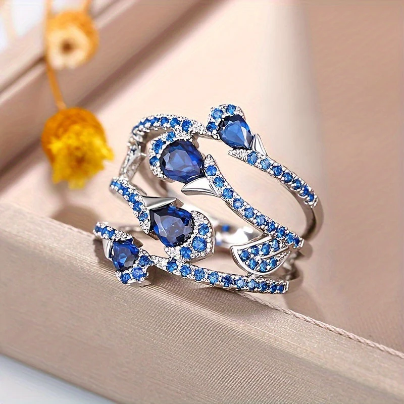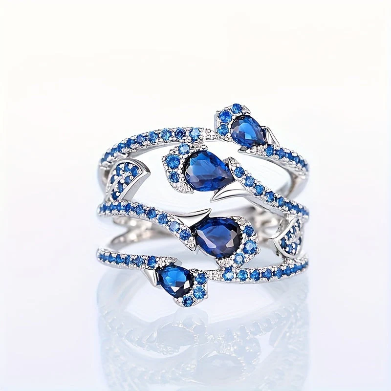 Fabriquée en argent de haute qualité, cette bague se distingue par son éclat et sa durabilité. La fleur bleue incrustée au centre attire les regards et demeure le point focal de cette pièce fascinante. Magnifiquement façonnée, elle évoque la beauté et la grâce de la nature.