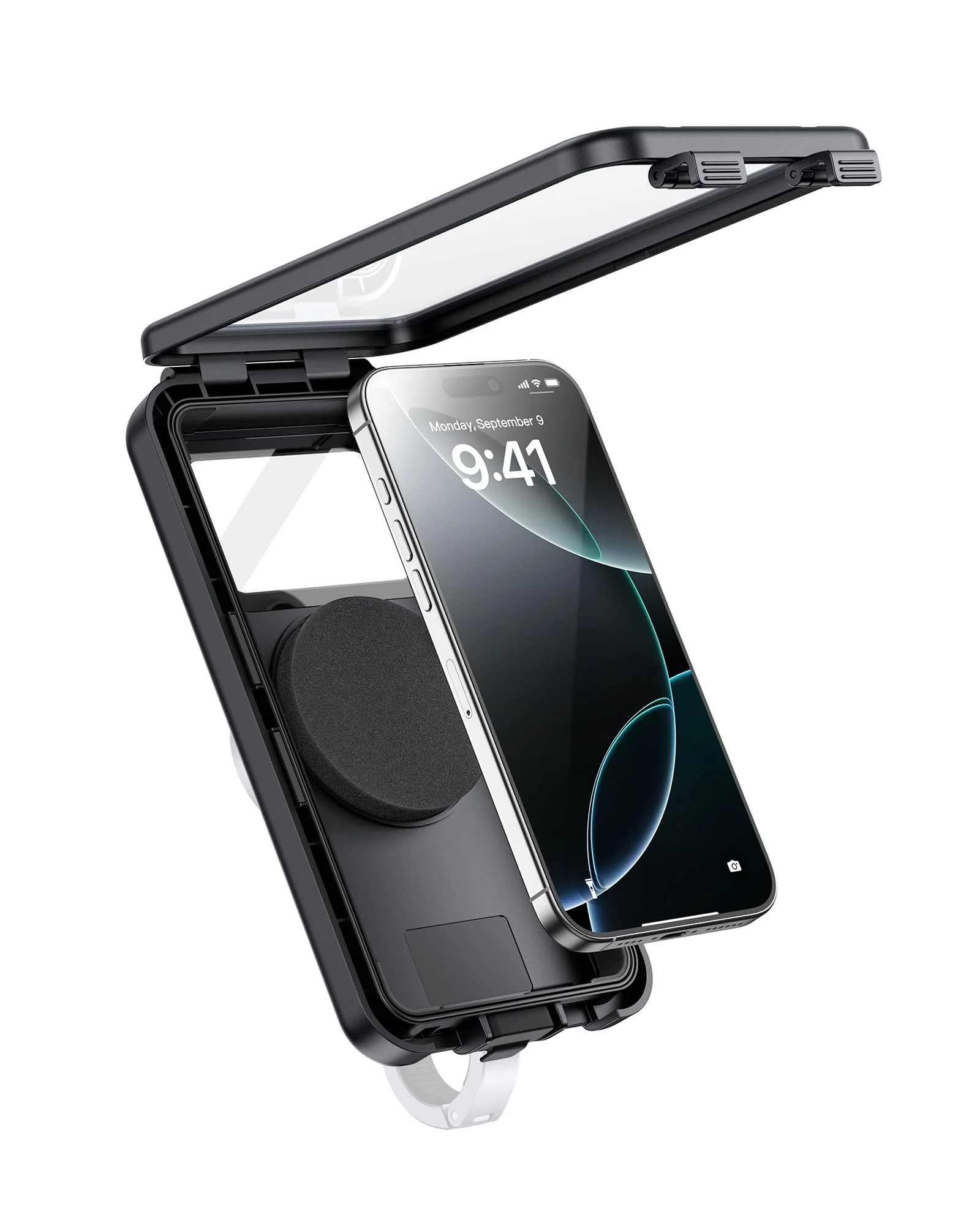 - Posez et prenez la route : Fixez ou retirez votre téléphone en une seconde. L’alignement magnétique et le système de verrouillage automatique de ce porte téléphone pour vélo facilitent grandement la fixation de votre téléphone, tandis qu’un simple glissement de l’interrupteur permet de le retirer rapidement. C’est le véritable support de téléphone pour vélo Snap & Go que vous attendiez.