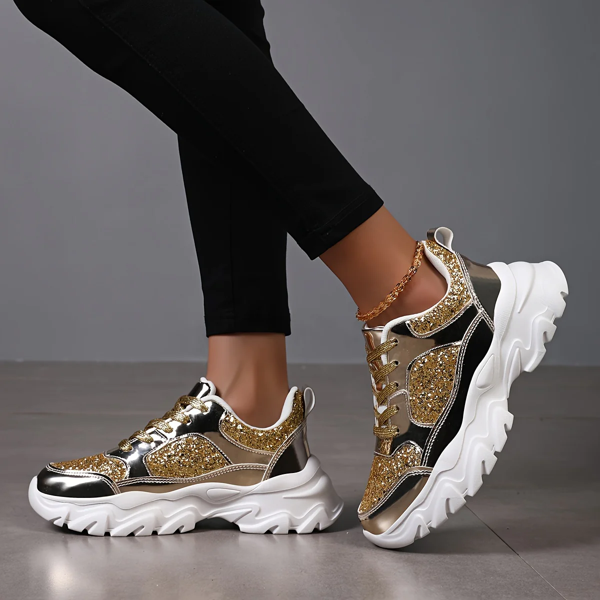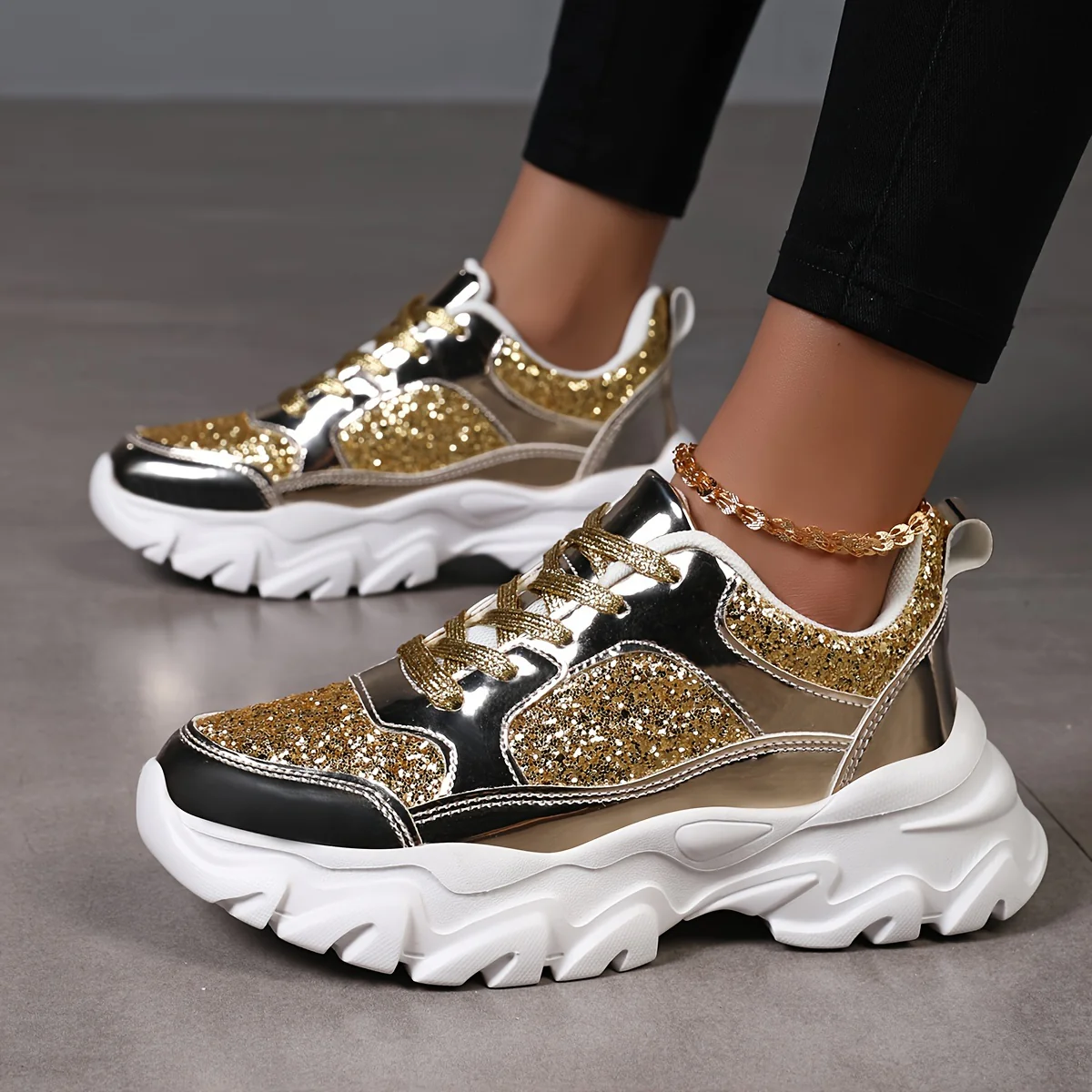 Apportez une touche d’éclat à votre tenue avec ces baskets dorées pailletées pour femme. Leur finition scintillante offre une allure chic tout en conservant le confort indispensable au quotidien. Parfaites pour allier style et praticité, elles s’adaptent aussi bien à une tenue décontractée qu’à une occasion spéciale. Conçues pour assurer maintien et respirabilité, ces baskets subliment votre démarche avec élégance.