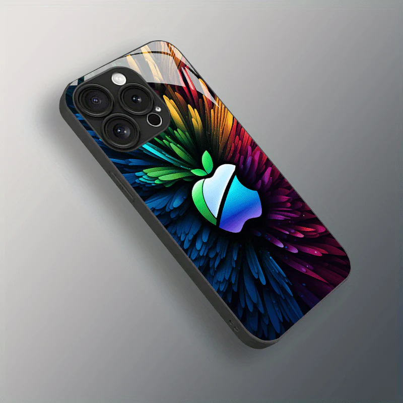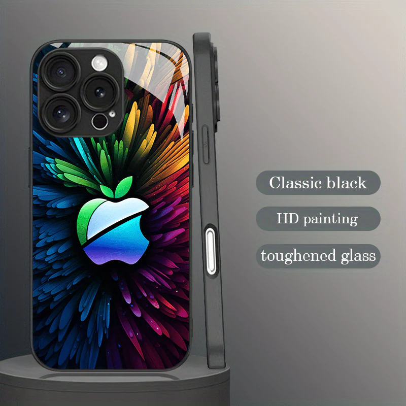 Coque en verre HD premium avec logo Apple coloré – Ultra-fine