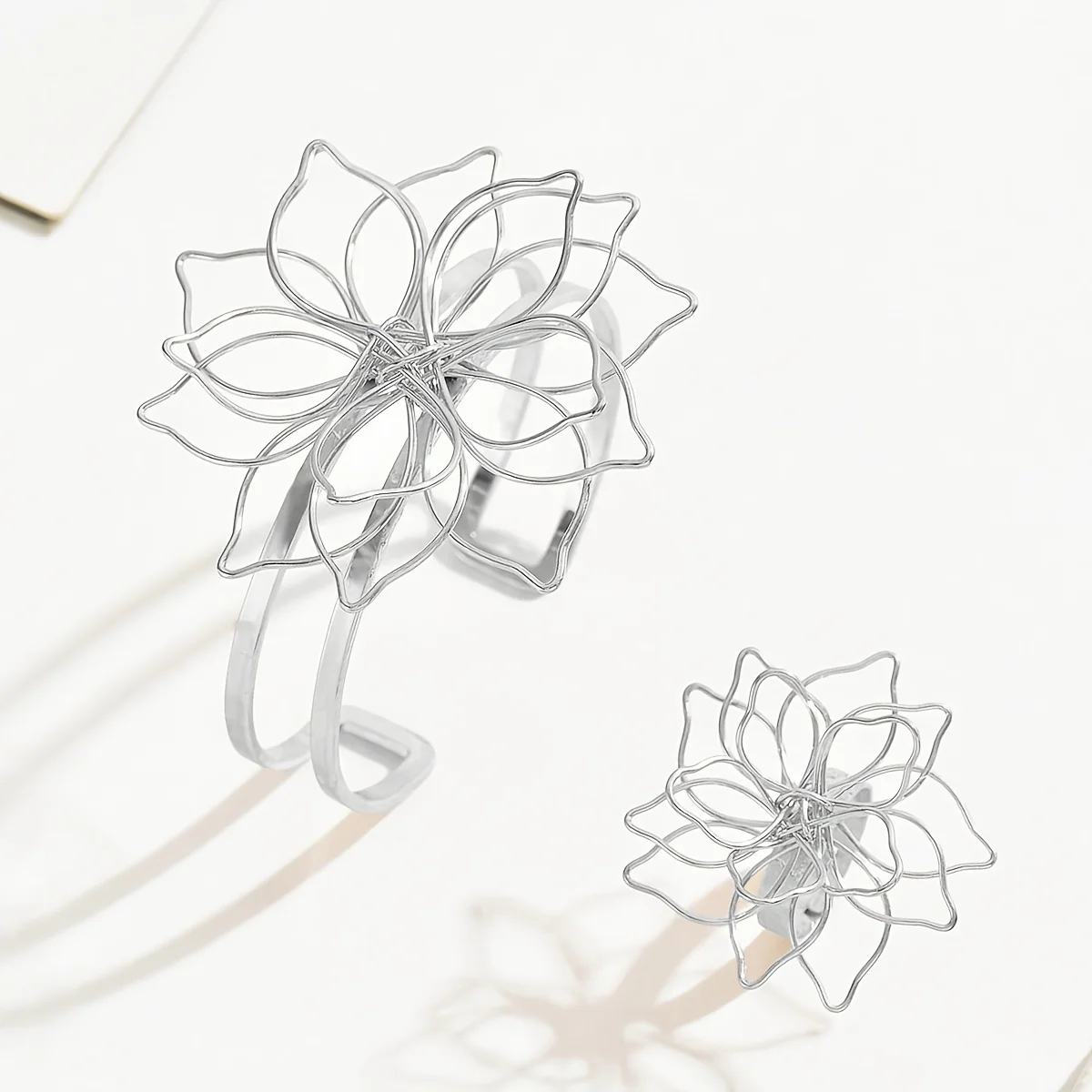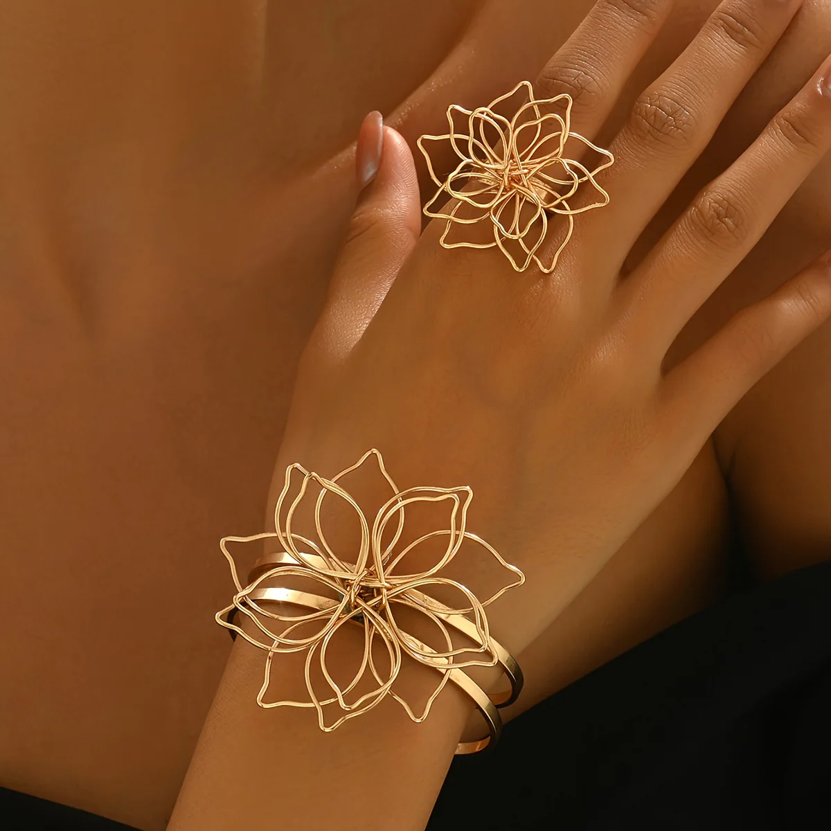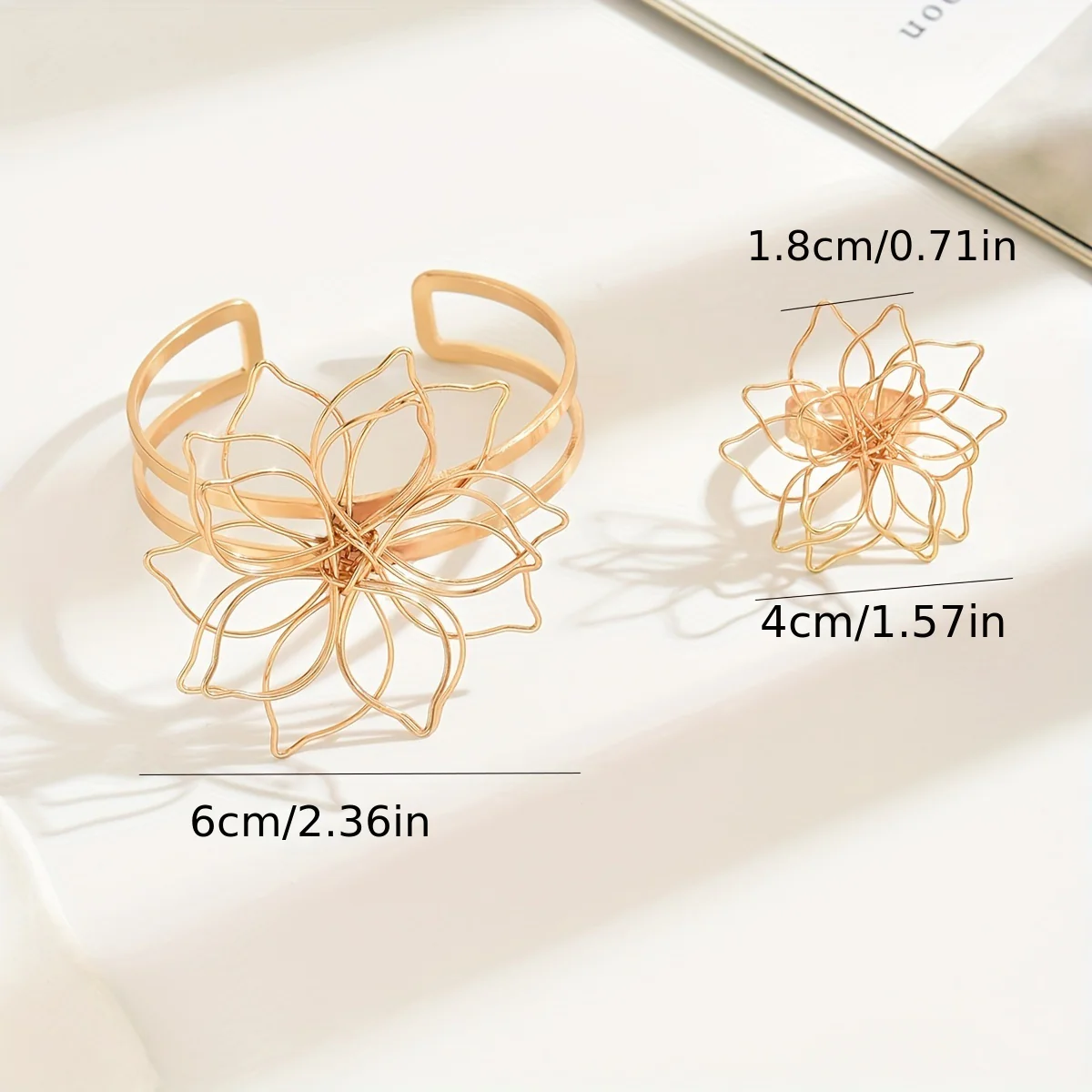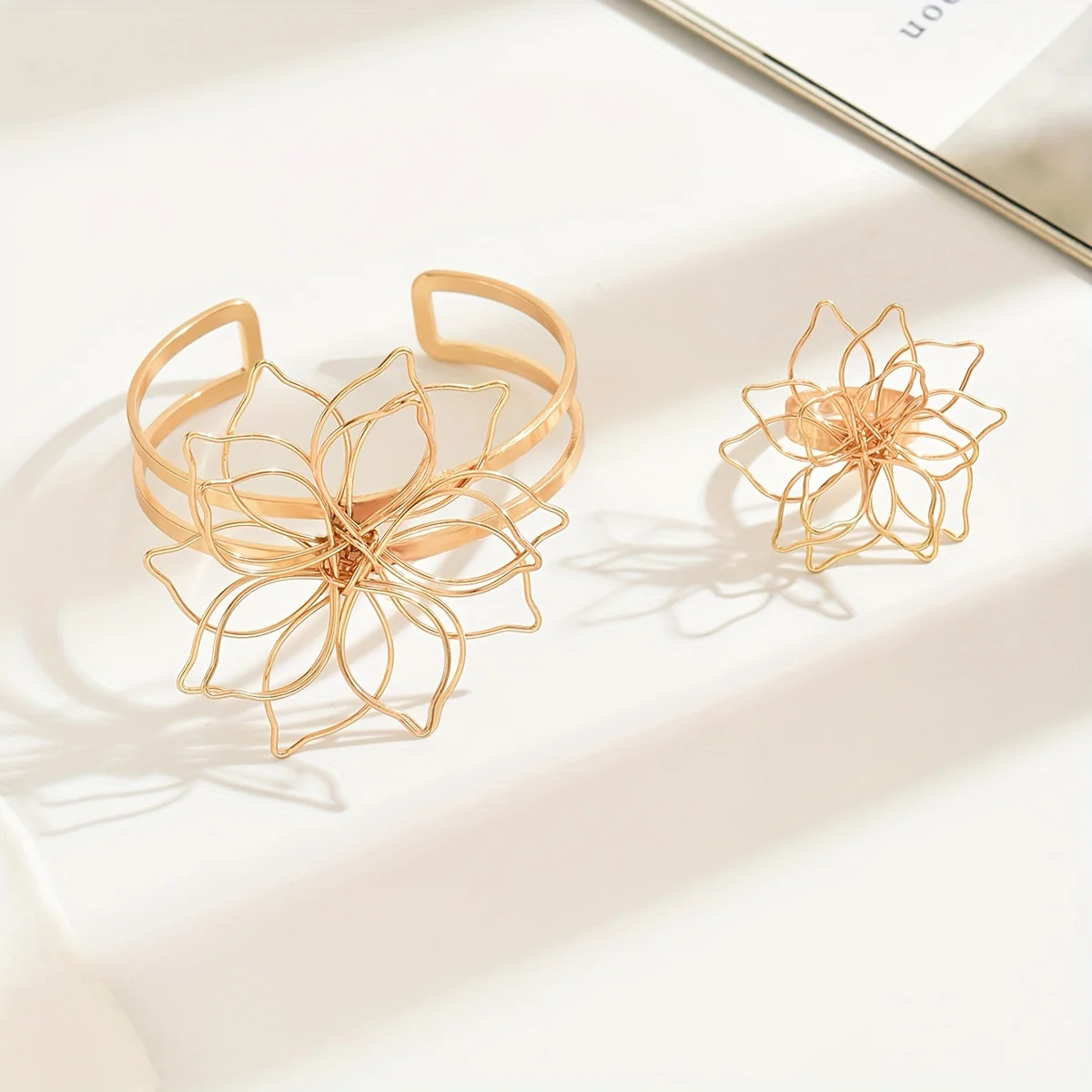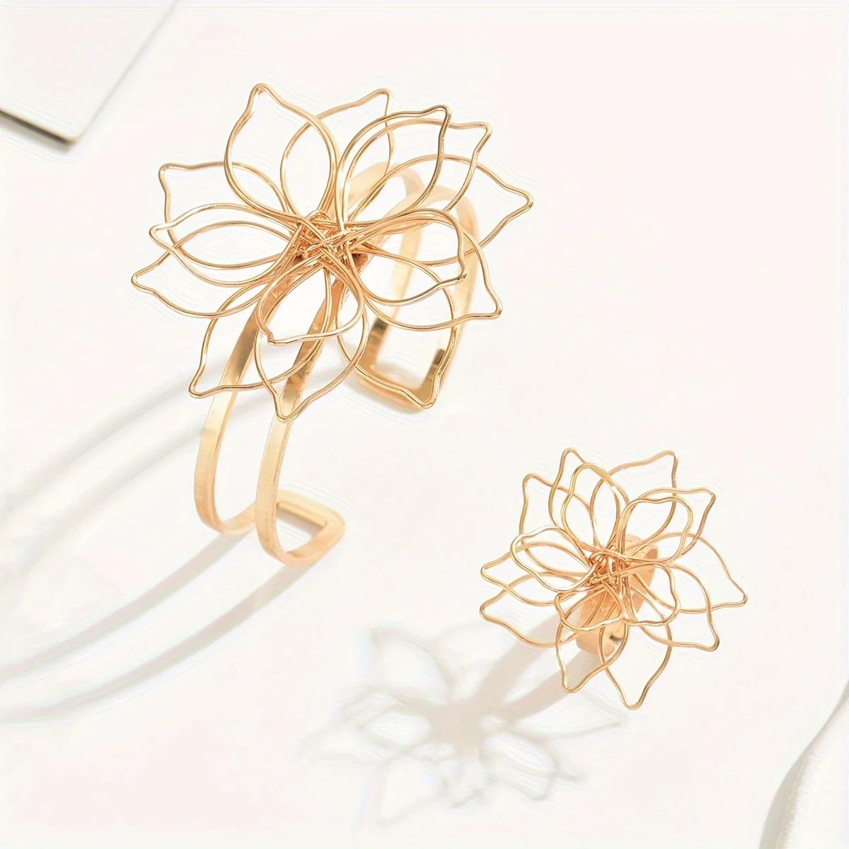 Ensemble de 2 bijoux élégants vintage dorés ajourés en forme de fleur