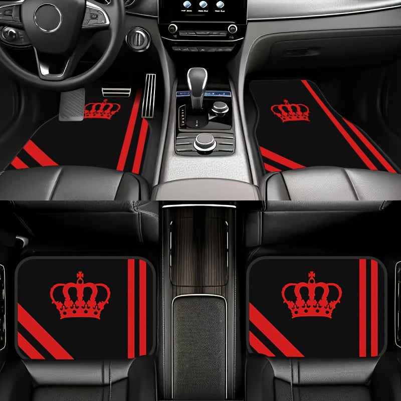 Lot de 4 tapis de sol de voiture Crown Element rouges et noirs