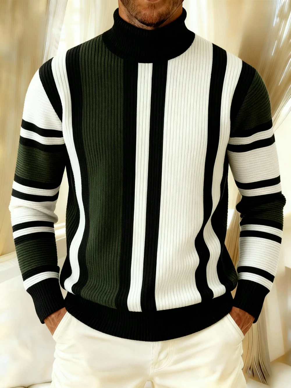 MAISON CLÉMENT PARIS™ | PULL HOMME COL ROULÉ RAYÉ CÔTELÉ