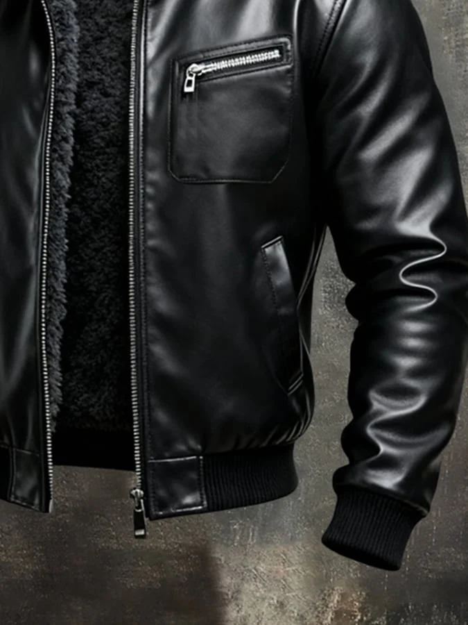 MAISON CLÉMENT PARIS™ | VESTE CHAUDE EN CUIR NOIR DOUBLÉE SHERPA