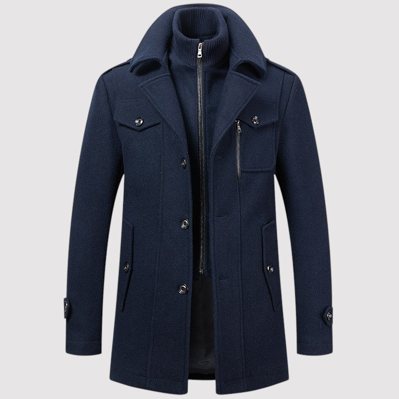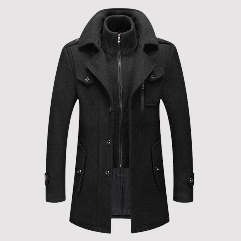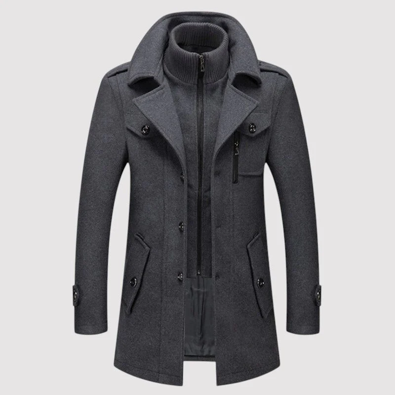 Manteau Long Homme en Laine – Manteau Élégant en Mélange de Laine Gris Foncé Automne/Hiver
