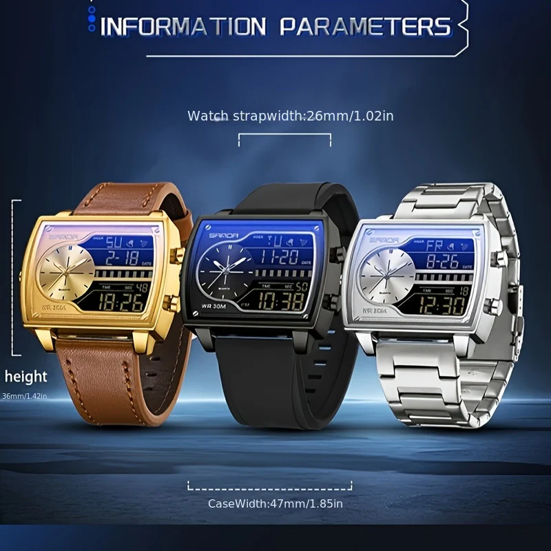 Que vous soyez un athlète ou simplement quelqu’un qui aime le sport et la mode, la Montre de sport numérique de luxe dorée SANDA pour homme est faite pour vous. N’attendez plus pour ajouter ce chef-d’œuvre à votre collection. Faites-en l’accessoire incontournable de votre look quotidien.