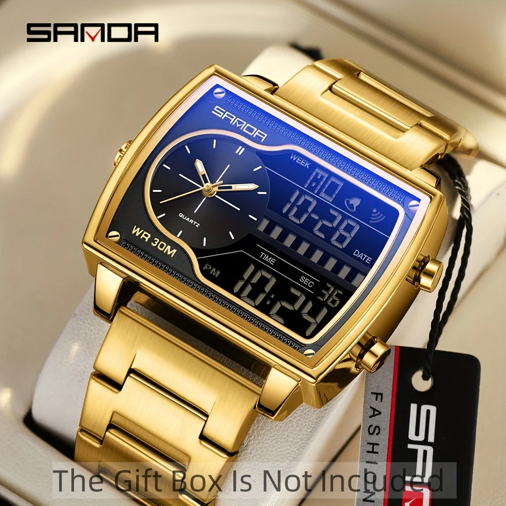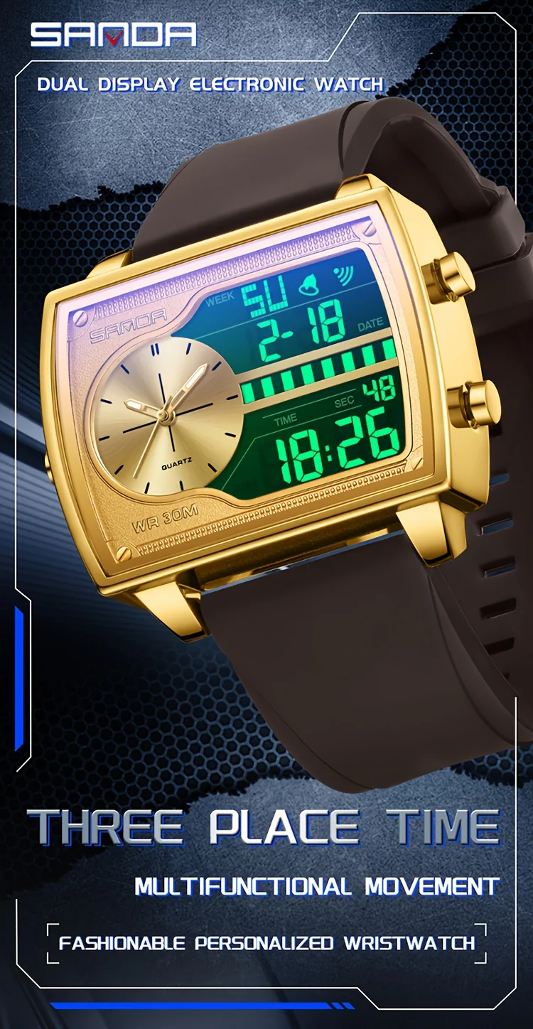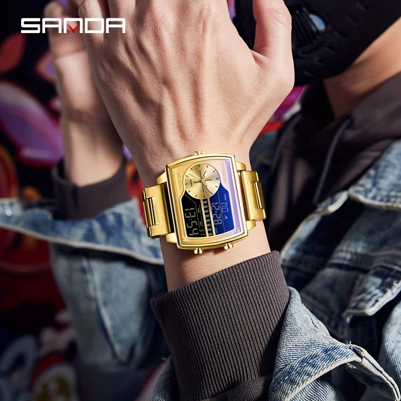 Montre de sport numérique de luxe dorée SANDA pour homme