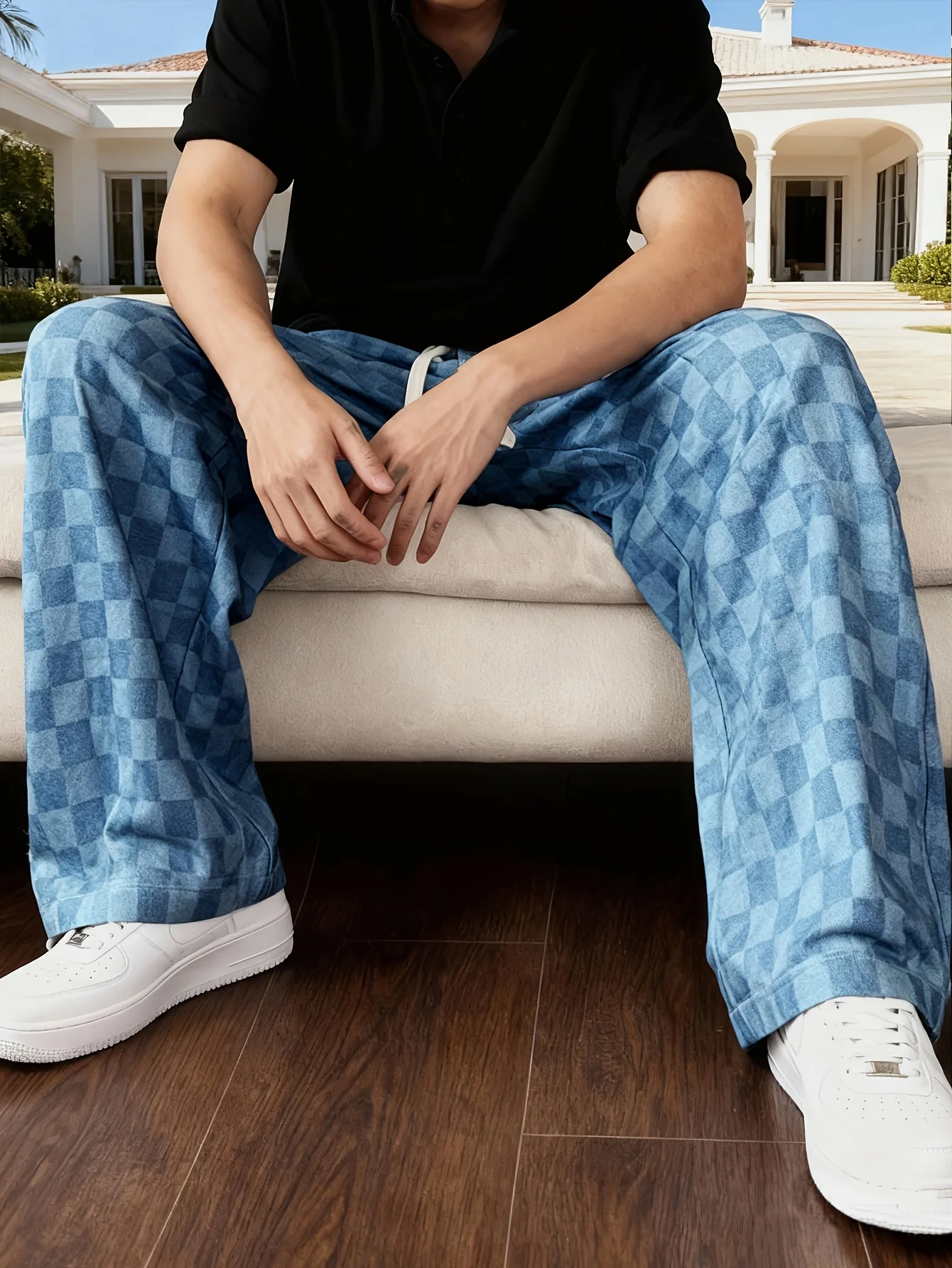 Pantalon à carreaux pour homme, coupe droite décontractée