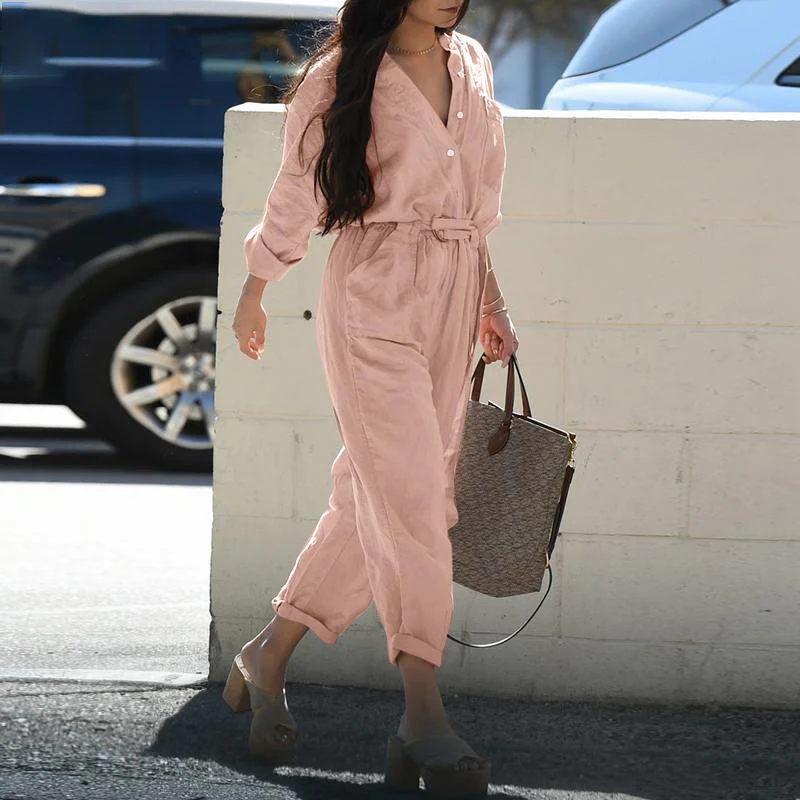 Salopette cargo décontractée à col polo et ceinture pour femme