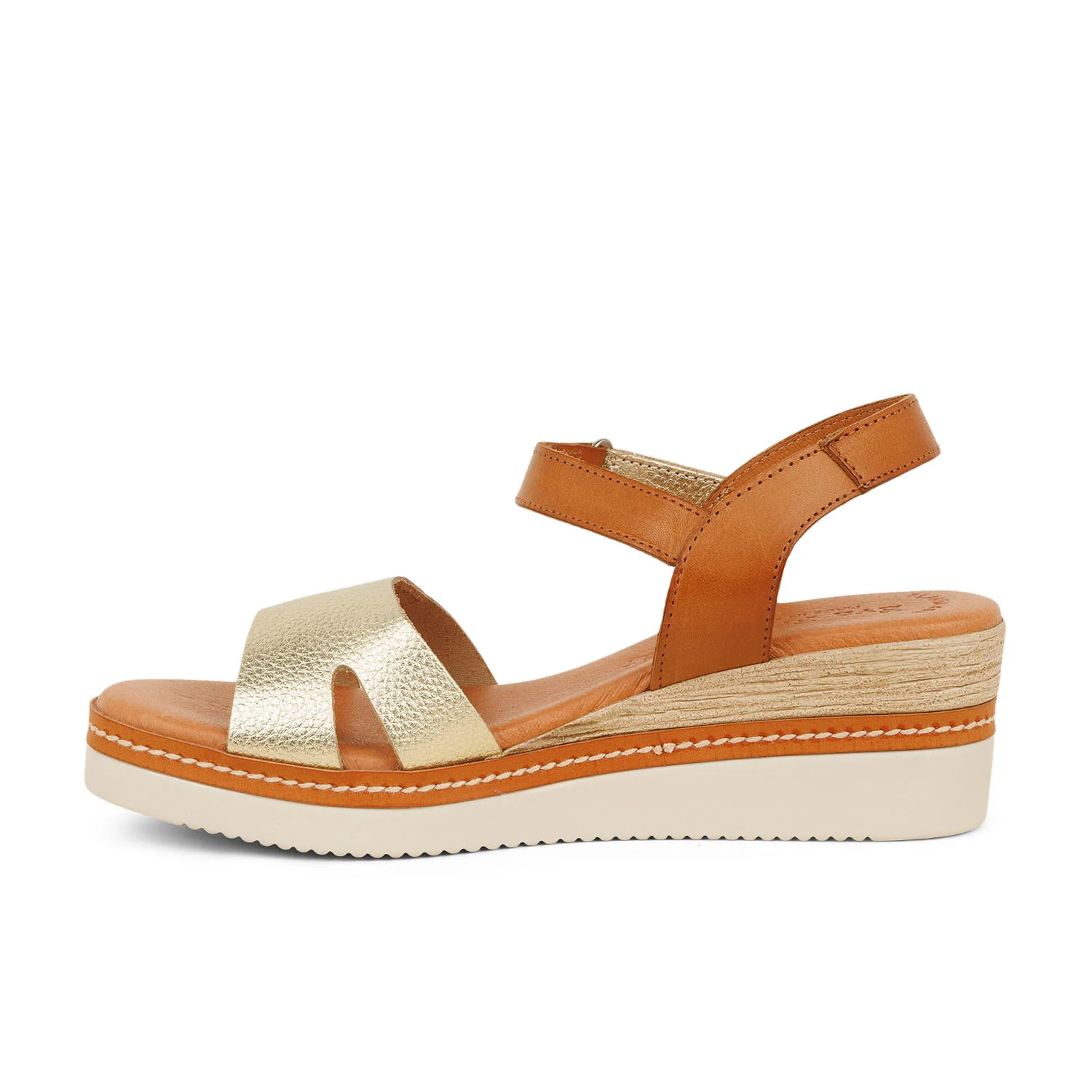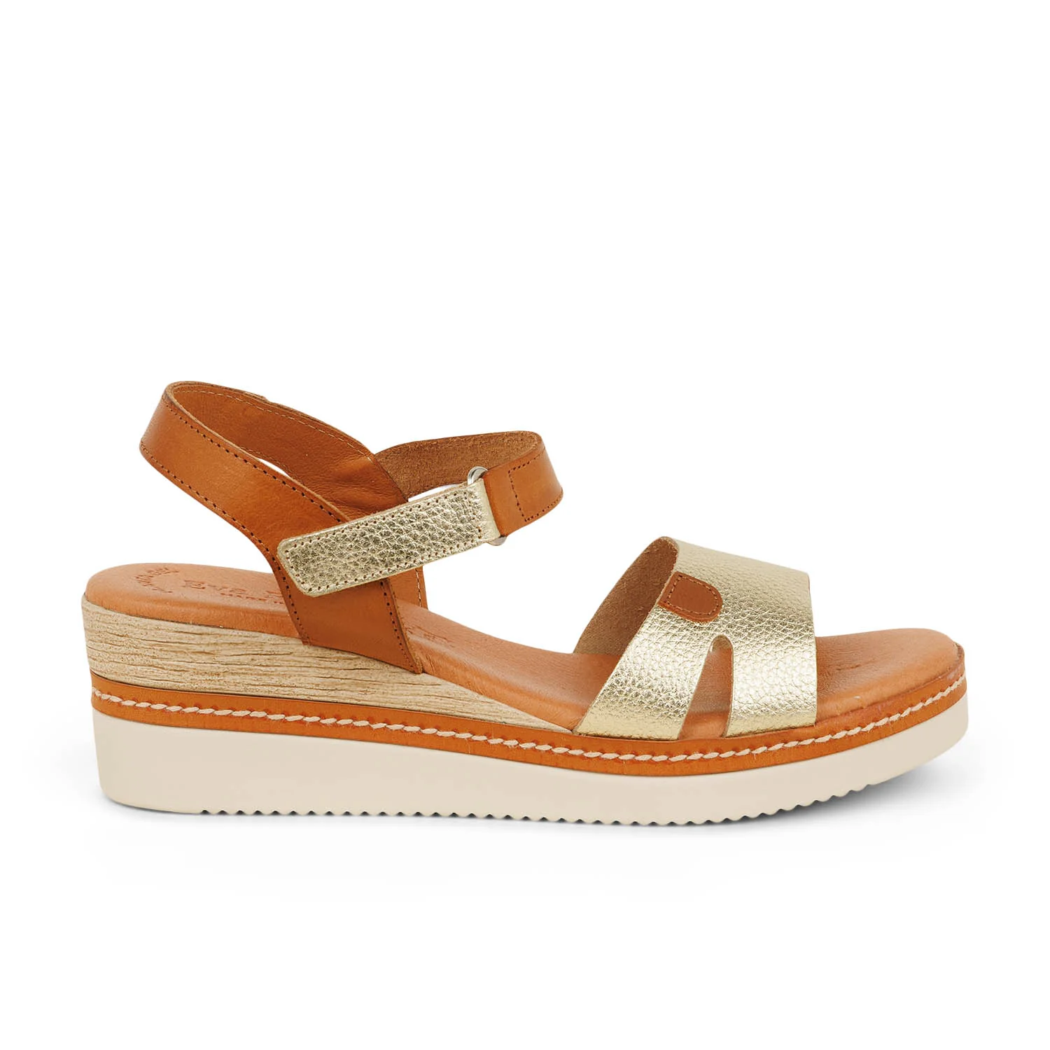 Sandales dorées compensées pour femme, Eva Frutos