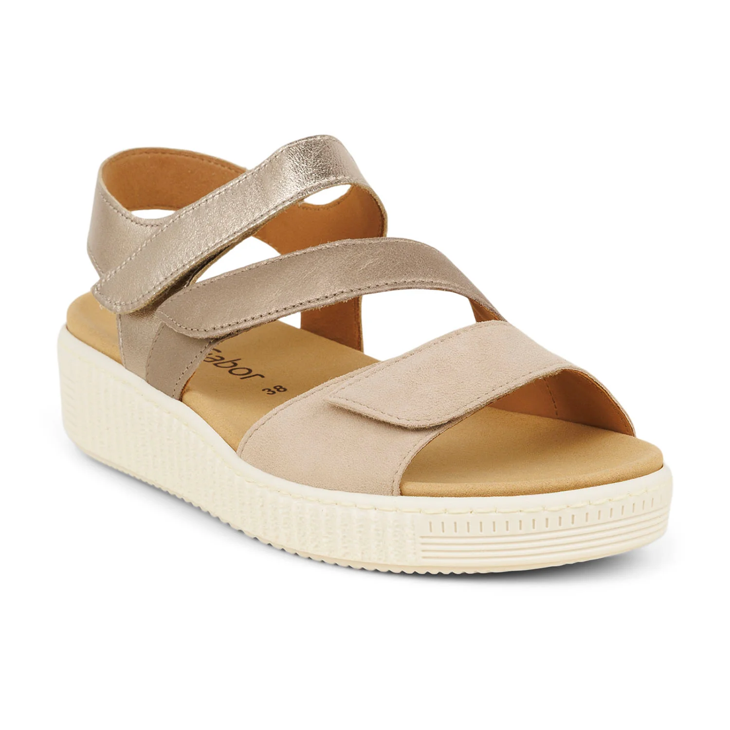 Sandales femme Gabor couleur beige, fermeture scratch à 3 brides.