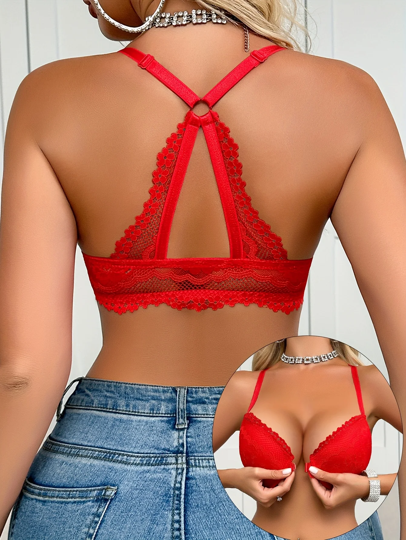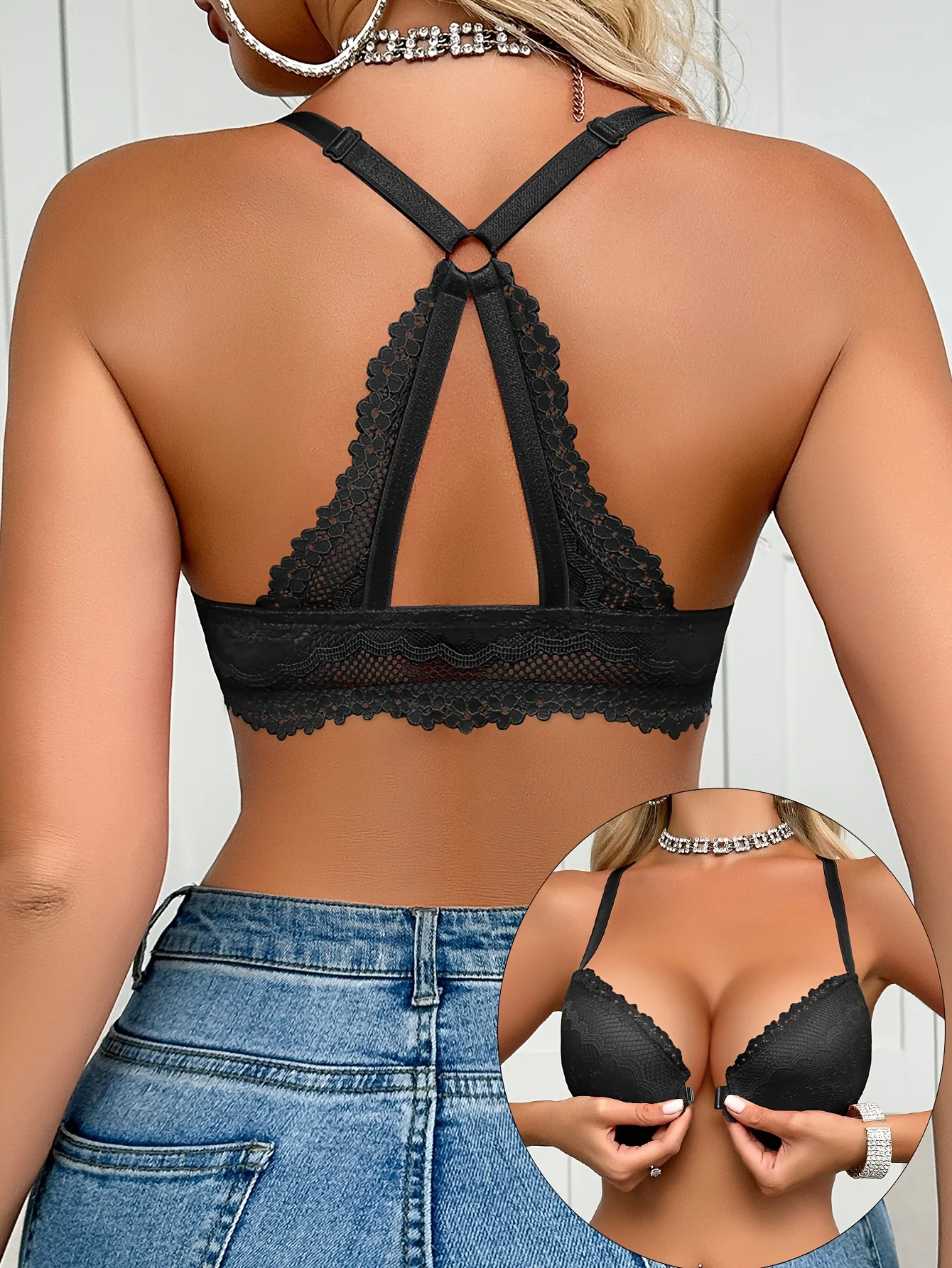 Soutien-gorge en dentelle sexy pour femme, fermeture sur le devant