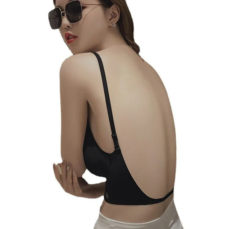 Soutien-gorge push-up dos nu en forme de U pour femme, avec bretelles et coussinets, idéal pour les petites poitrines.