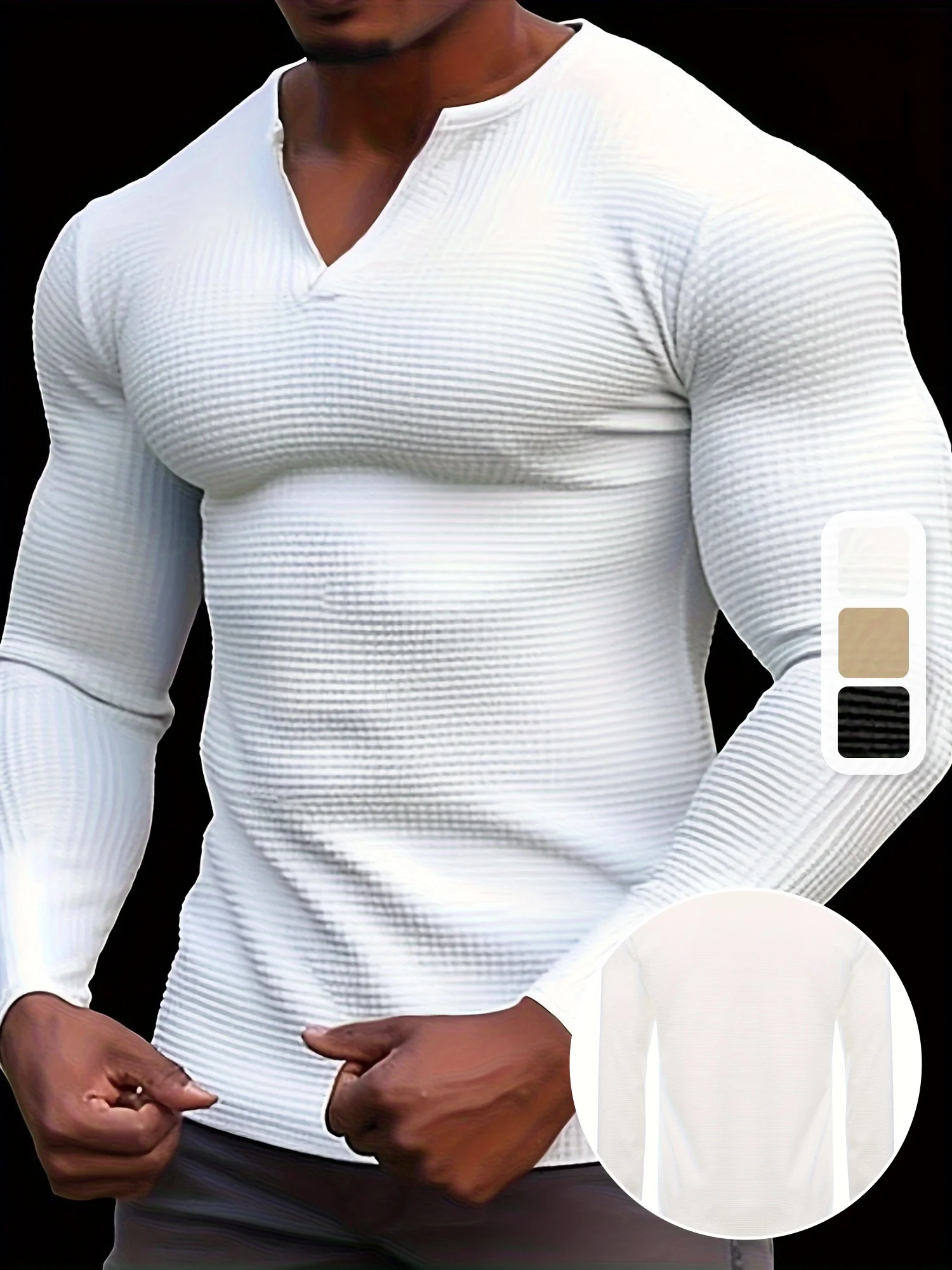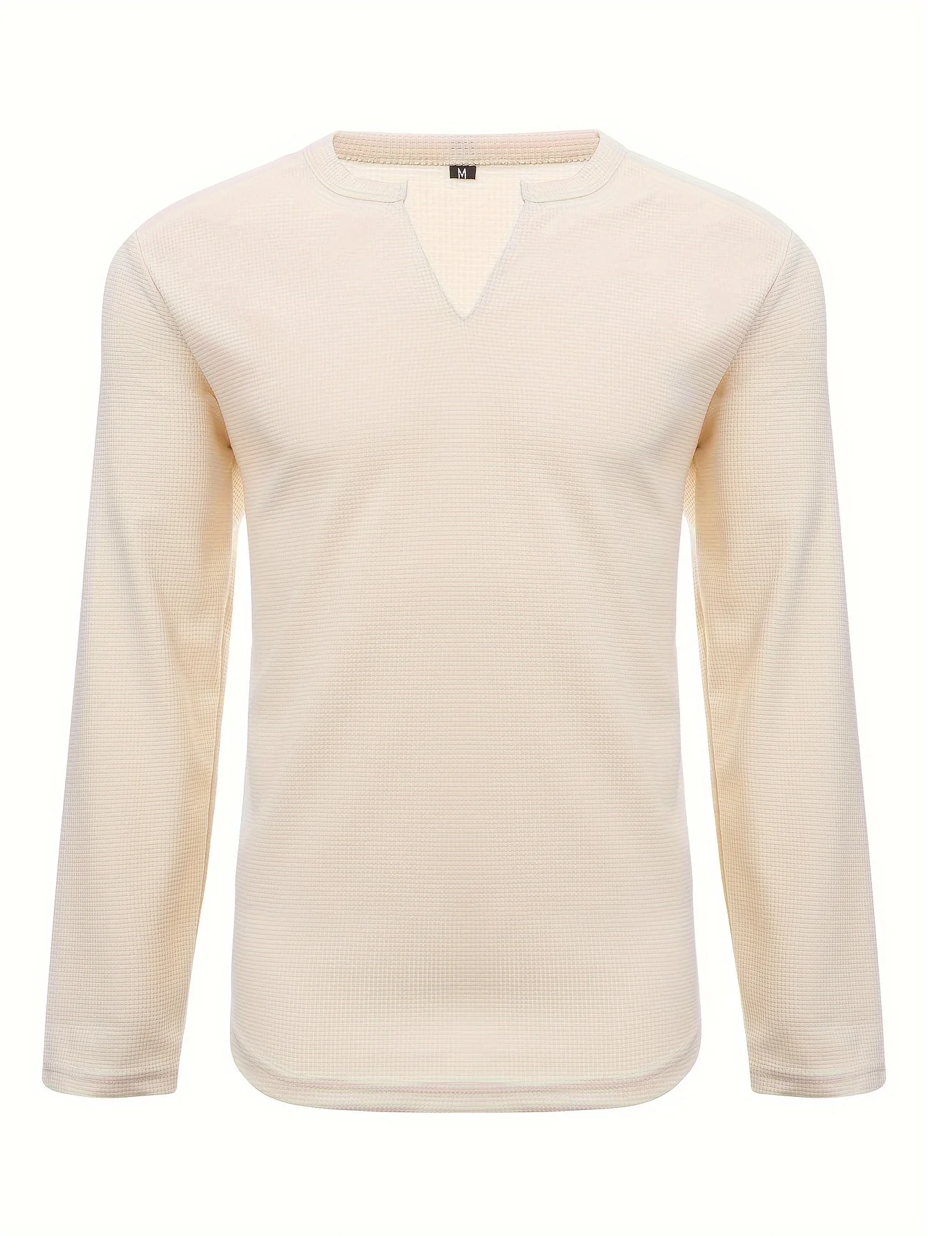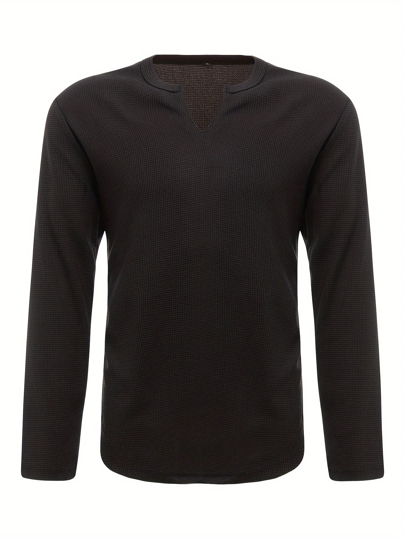 T-shirt à manches longues et col en V gaufré pour homme