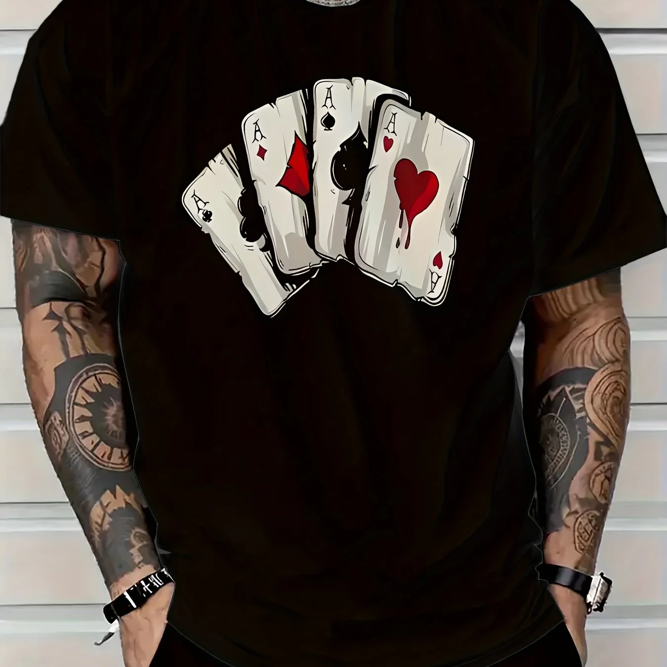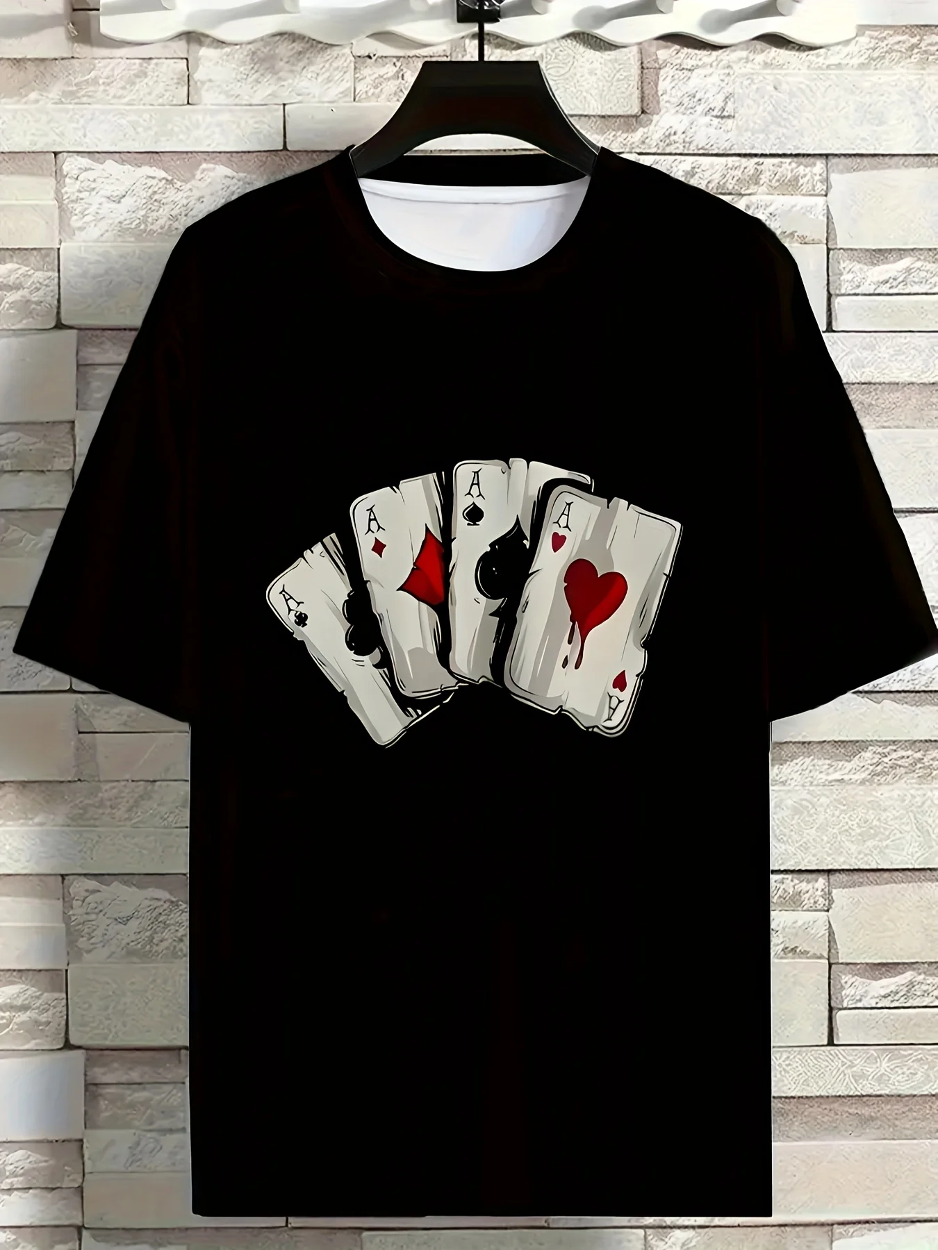 T-shirt homme en maille respirante avec imprimé cartes de poker 3D