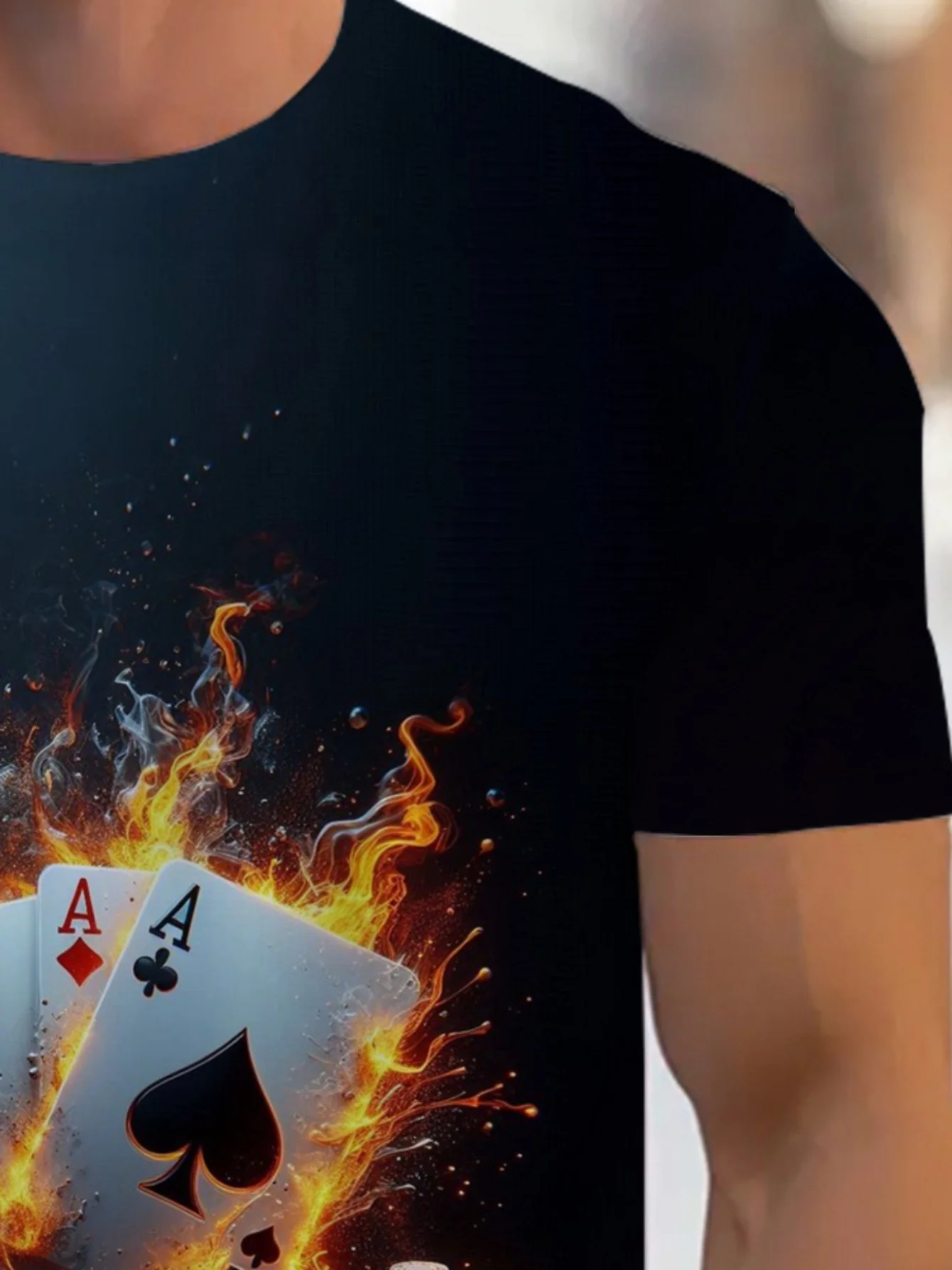 T-shirt noir pour homme avec motif dynamique de cartes de poker