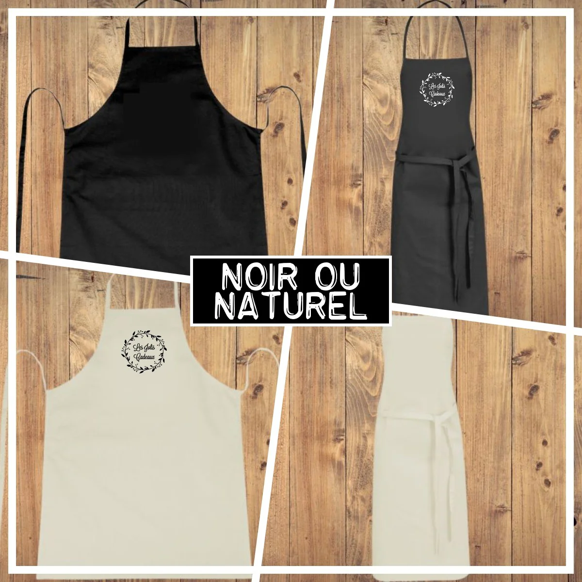 Nous vous proposons des modèles à personnaliser et vous pouvez également nous envoyer vos indications pour personnaliser votre tablier.
