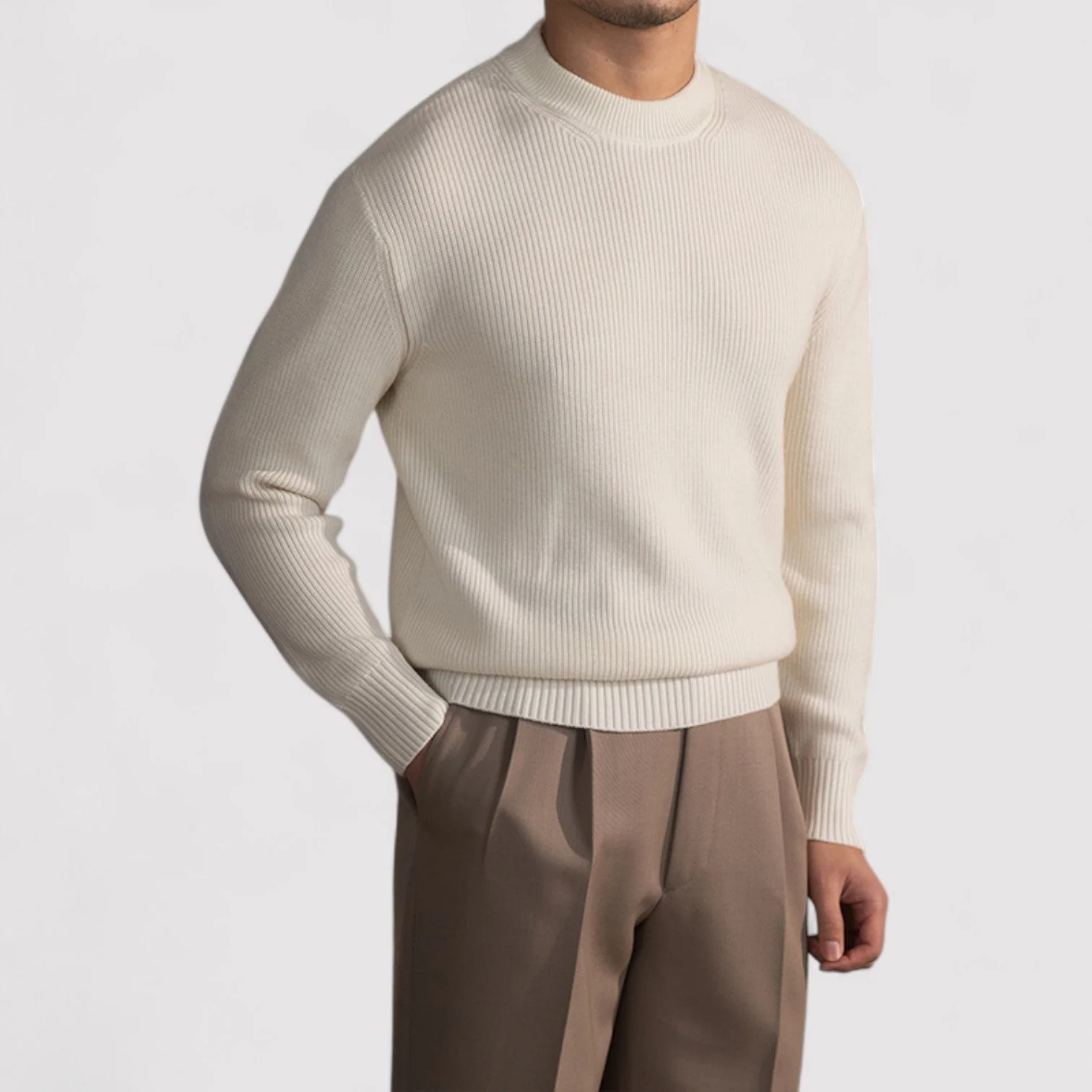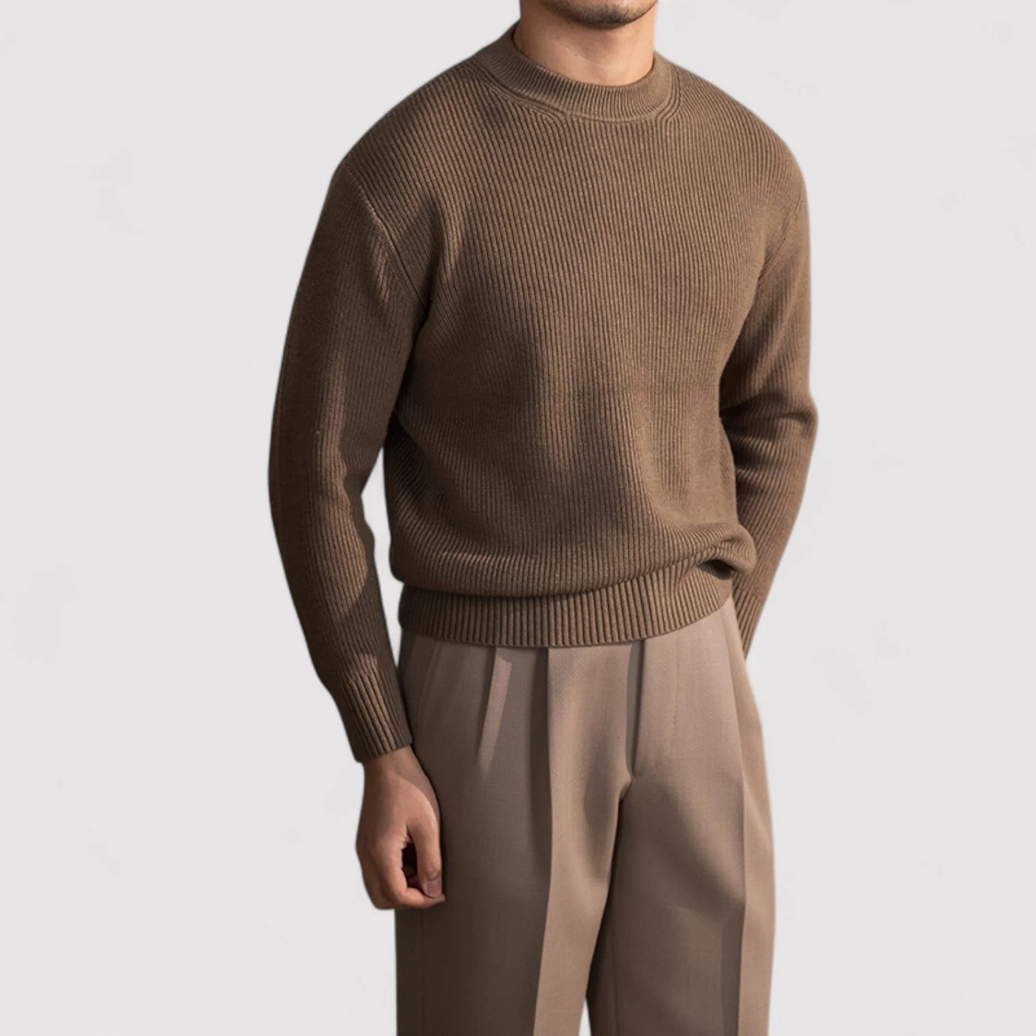 Gebreid uit een wolrijke blend met een subtiele ribstructuur, vindt The Jules het evenwicht tussen stevigheid en zachtheid. De ronde halslijn en regular fit maken het stuk geschikt voor moeiteloos laagjes dragen — onder jassen, over hemden of gewoon op zichzelf. De warme koffiekleur completeert een palet dat tijdloze helderheid ademt. -
