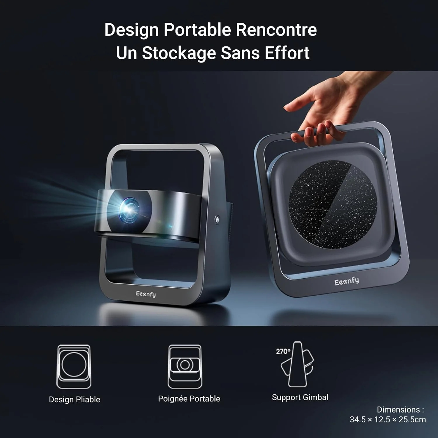 [App Intégrée] Eeenfy Venus V1[2.0] Vidéoprojecteur Portable, Projecteur Android avec 350ANSI, 270° Rotation, E-Focus/Keystone, Rétroprojecteur, Videoprojecteur WiFi Bluetooth pour Home Cinéma, Blanc